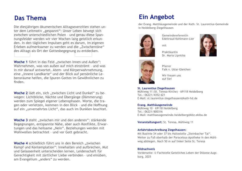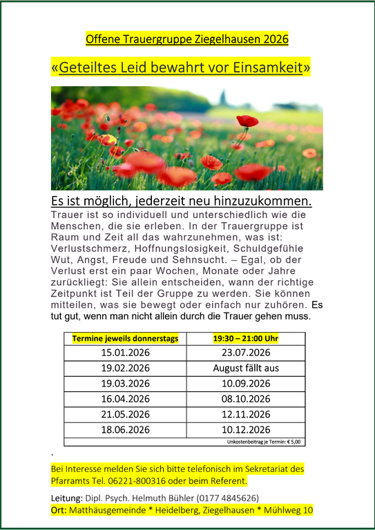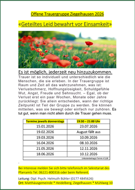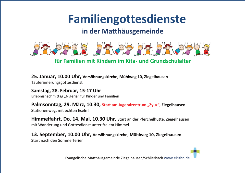 Weitere Informationen erhalten Sie im Pfarramt der Versöhnungsgemeinde unter