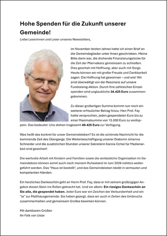 - Bezahlung der Chorleiterin des Jubilate-Chores.